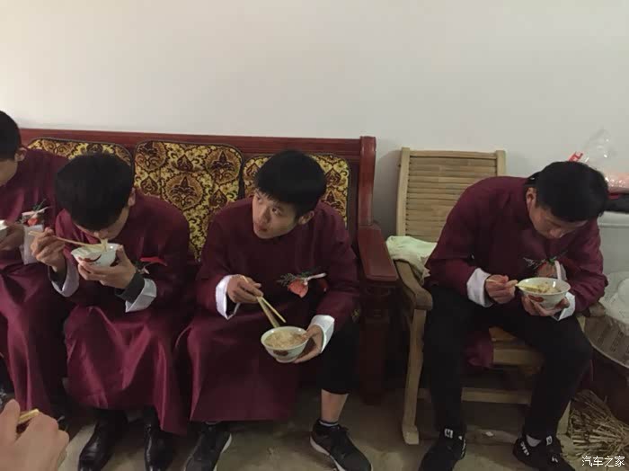 伴郎们在吃面条