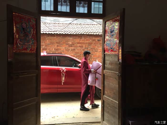 吃完饭后,伴郎们就开始搬嫁装上车