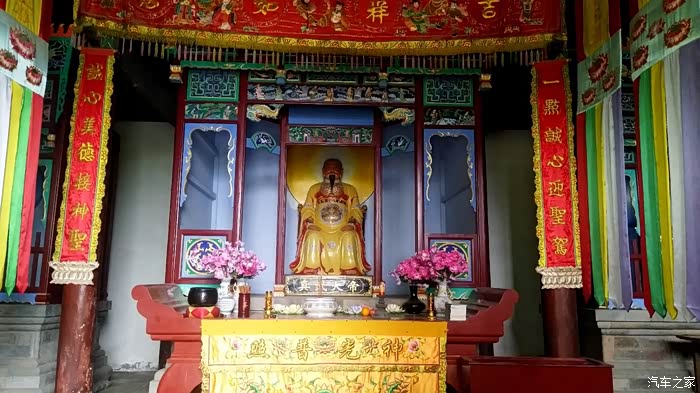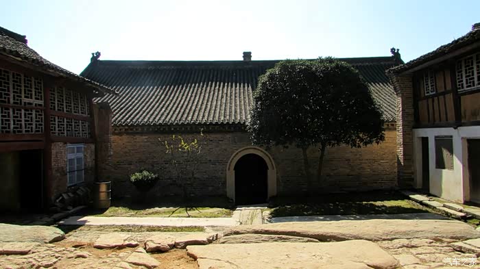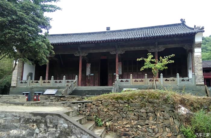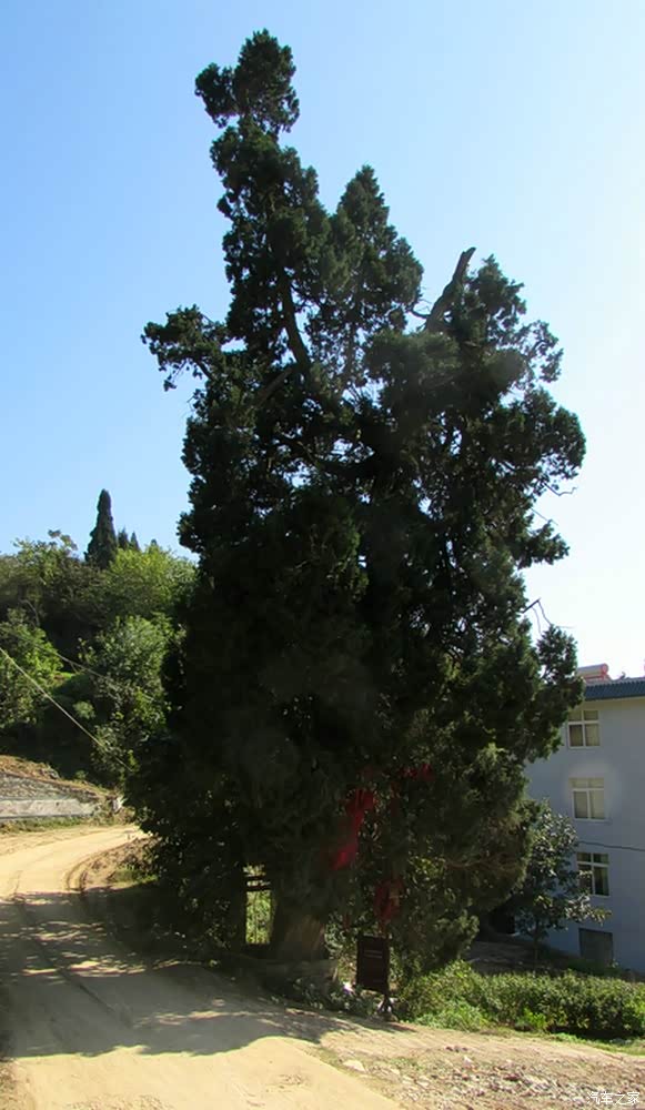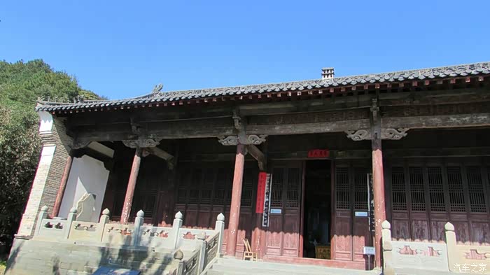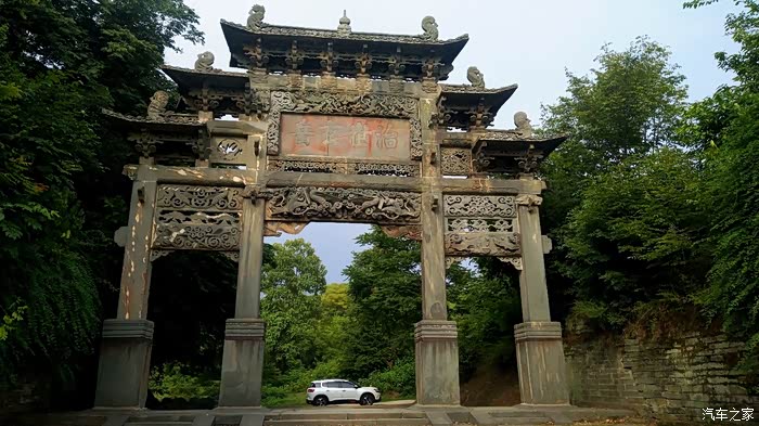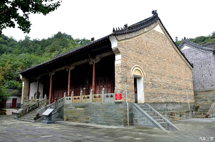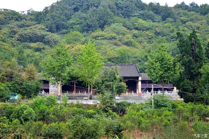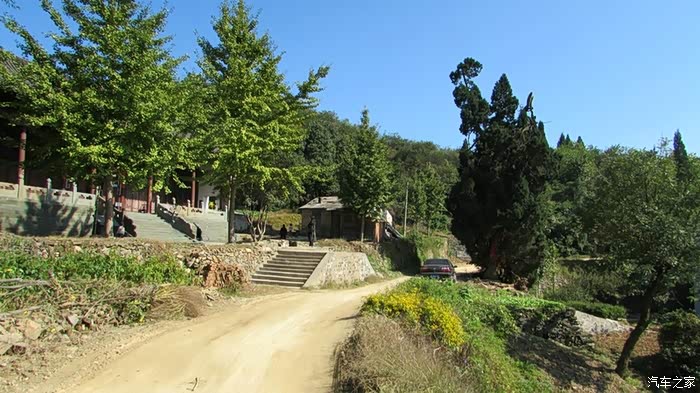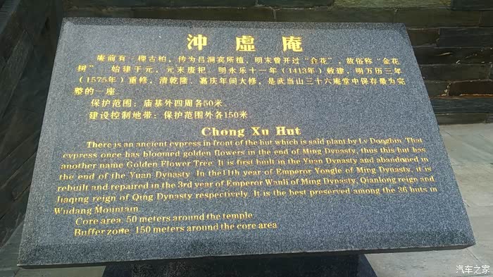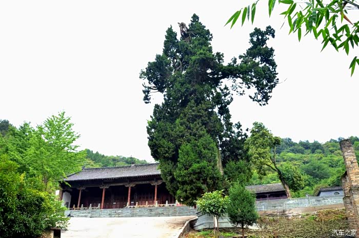 自驾雪铁龙天逸C5从十堰城区出发,沿老白公路向东30多公里,到武当山治世玄岳门牌下左拐,行进不足一公里,便可见路旁有一棵翠绿古柏,一侧山岚下就是武当第一庵——冲虚庵。