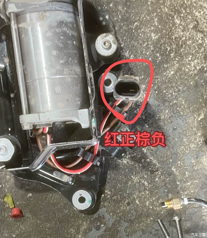 先拿12v电瓶搭电(红正棕负)测试打气泵压力