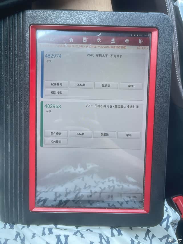 以我这次故障为例也是大多数故障车友80%可能出现的这个问题 “车子停了一晚上后两边后轮空气悬挂全部塌陷 解锁车辆打气泵有工作但充不上气”中控显示“底盘功能受到限制”