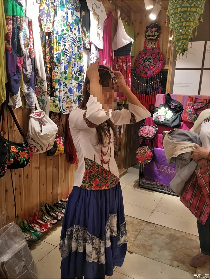 给老婆从头到脚买了一身民族服饰。自己和儿子被门口的老婆婆推销了2个手串,1条装饰项链。