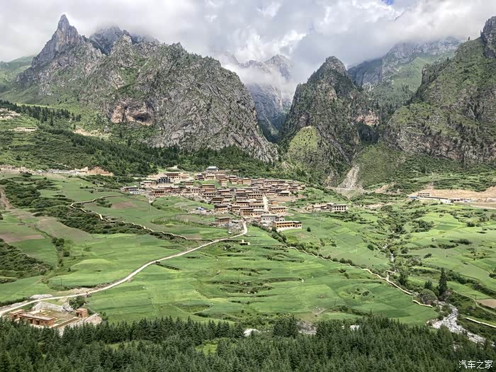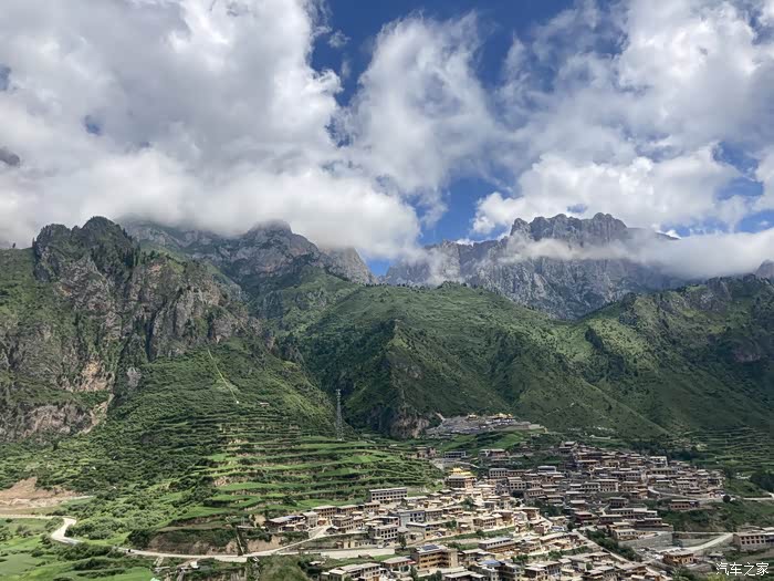 老婆算是个半个天主教爱好者,连信徒都算不上,小孩子对于寺庙也不是很感兴趣,父母采购一通也累了,好像只有我兴致勃勃转了一大圈。下午一点多再度启程前往下一站——扎尕那。近300公里路程但耗时要4个多小时,山路蜿蜒曲折,安全第一。对扎尕那的印象基本都是网上来的,属于新兴网红景点。其实这也的判断也对也不对。单位同事据说十多年前学校派遣组队在哪里带了几个月,看看照片说景色没什么变化,寨子里的建筑群比以前大了,而且也有了一丝现代化的感觉。
