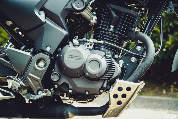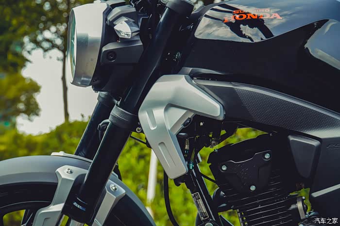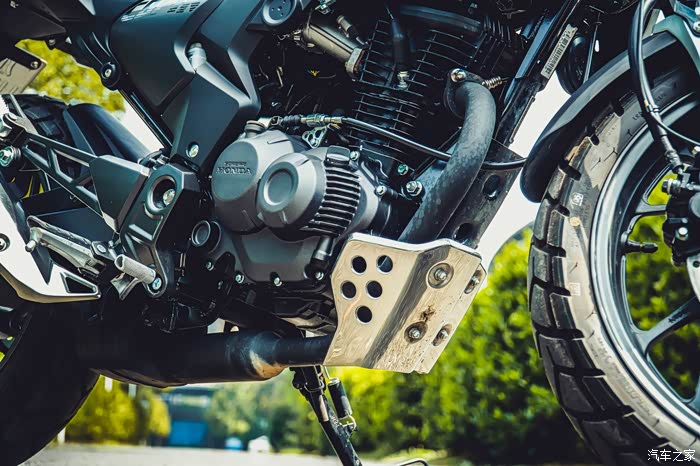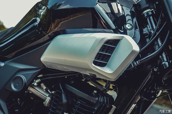 油箱下方的侧护罩采用了左右不对称的设计,这个造型很有机甲风的感觉,使得整车造型更加饱满和运动了。