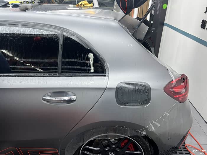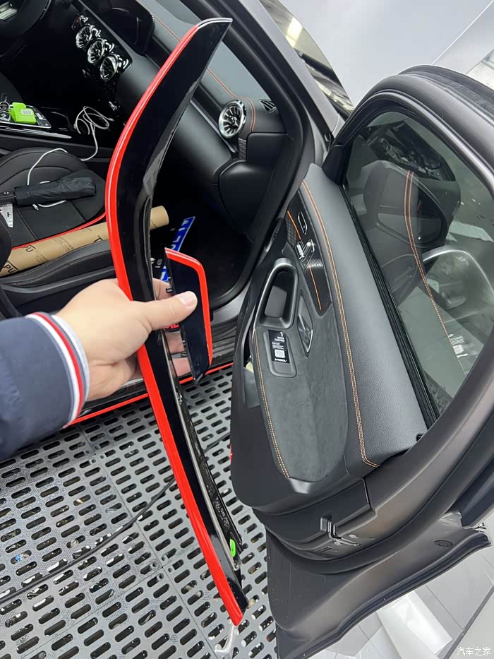 车牌顺利的选上了后三位A45的车牌,买车后一个来月才贴,车身有原车拉花,又不舍得把拉花撕下来,拉花边缘处还是有一点点的小白边。风刀、把手、油箱盖、标志等都需要拆。车漆磨砂的所以贴的磨砂膜效果好,装饰件、风刀及尾翼贴是亮面的,贴的亮面膜。从上午10点到24点整整弄了14个小时,贴膜确实不能图快,车身整体磨砂膜贴的还算省事,剩下那些亮面的地方确实麻烦,太多地方零零碎碎的。顺便拍了下紫色氛围灯还算好看。