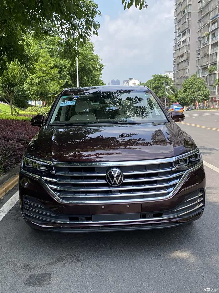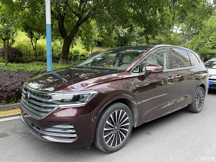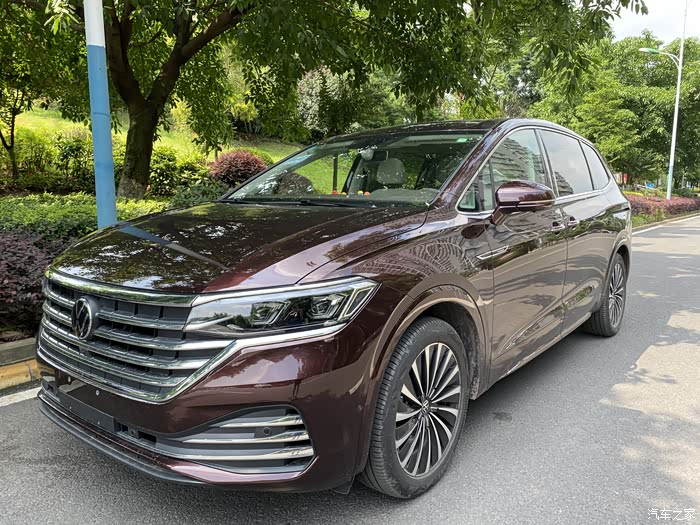 左右45度角的靓照各来一张,在MPV车型当中,我觉得威然的外观算是比较好看的,毕竟融入了一些年轻的元素,像悬浮式车顶啊之类的。如果没记错的话,名字还挺浪漫的,视觉上是浅浅的红色,配色不突兀,在车群中也有一定的辨识度。