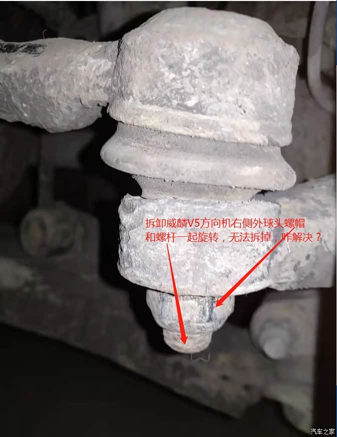 在用套筒拧威麟V5右侧方向机球头固定螺帽和螺杆一起旋转,是啥原因?无法拆掉,怎么办?