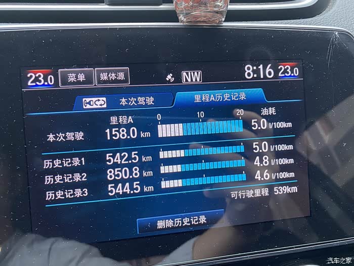 刺激一下!这是加满一箱油后可以开的公里数,刚加完油有点偏低,一般在5L/100km