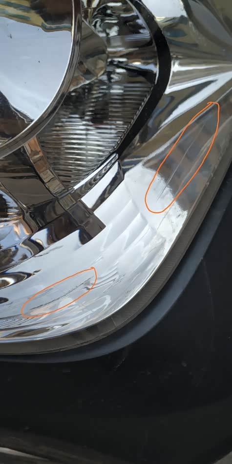 大灯两条印,保险杠也有印,不过换下来了看不到了。