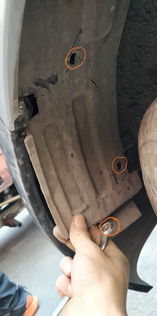 然后开始拆保险杠了,用10号的扳手,先把1、2、3、4、5位置的螺丝拆下来,再拆两边的。