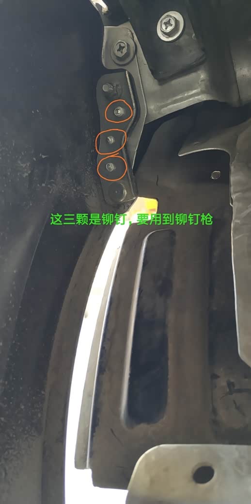 拆完了,现在就是装上去,先把这个小铁片固定在保险杠两边,还要打铆钉,不知道小的螺丝能不能代替,我没有仔细研究......