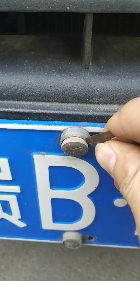 先拆车牌,用美工刀慢慢抠出来,再用一字螺丝刀用力摁着拧下来(防盗螺丝,不好拆),拆完才知道可以先把后面螺帽先拧下来的,比较省力......