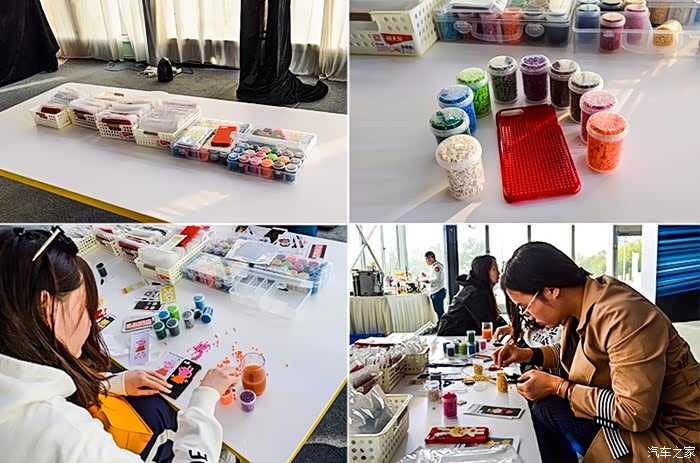 陪同的家属们在小桌台前,开始了自己的艺术创作,制作属于自己的手机壳。