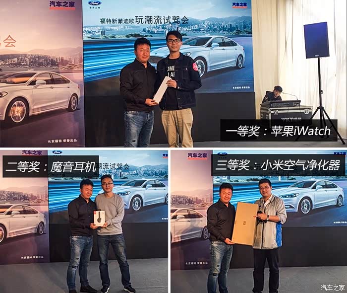 第五部分:统计每位嘉宾的活动积分,最终获得一、二、三等奖的朋友就是下图这三个哥们,其中得第一的小哥们儿,在上一次蒙迪欧混动跑二环13圈的活动上就已经认识了,这次又见面,真是很巧。