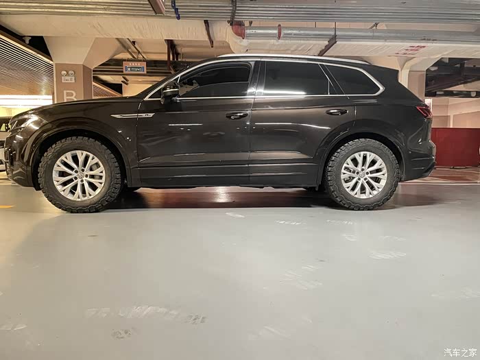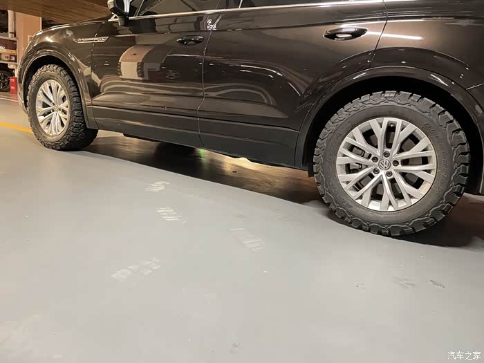 河北到内蒙顺便测试一下新换的AT胎,油耗,轮胎使用分享。原车21寸更换18寸轮毂配百路驰KO2全地形,18寸三代途锐欧洲是有这个选配的,所以安装好基本做到原车状态,不突出不外倾时速表一致。油耗显示平均在10个左右,这个测试不是很准我全程高速而且河北是到内蒙一路海拨是升高状态一路小坡。KO2使用感受,涞源到右玉一直是下雨状态,大概有很长一段时间暴雨,时速80-120都有,并没有网上说的KO2雨天很滑的感受但是雨天还是降速安全为主,在高速大雨80-100左右很多次都是左边有水窝右侧没有这种状态都没有所谓的“滑”KO2是有排水槽是斜纹排水槽不能说没有只是没有公路胎或者其它牌子那么明显的直排槽。在说说途锐配KO2,我原车21寸大概用了四万公里我换之前认为会增加很多油耗这个胎这么笨重看似很硬会影响舒适度,当我换完我感觉没有眼观的那种感觉,跑完这七百多公里,我觉得比原尺21寸的舒适度提了很多,并不是所谓“笨重”看似很硬实际弹性很好,还挺舒服当然了都是因人而异只是我个人感觉,至于操控,说实话途锐这个车原车操控就是很平庸,没有极致操控但是也不会差到哪里,所以对这个问题我忽略。再说一下噪音吧我个人感觉比以前公路胎噪音一定是有提高,60-90左右是这个胎噪音明显的时速,但是我能接受,还是因人而异,每个人用车需求不同AT的缺点我个人可以接受,都是在范围内的。本身换轮胎就是一个很重要的事情,换之前也对比很久,也询问过几个车友,最终采用了“花匠”正在使用的方案,当时也想过其米国AT,最终还是选择常规规格,常规品牌。原因一点三代途锐换完AT是不具备备胎功能的,如果想上AT备胎车顶行李架放一个或者后备箱放这样储物空间没了,我一般不带备胎,我不去找特别路况,只是应付而已所以我个人没有备胎需求,但是我还是有专业气泵和补胎工具临时应付。其二就是常规尺寸常规品牌在每个城市基本都可以匹配到。