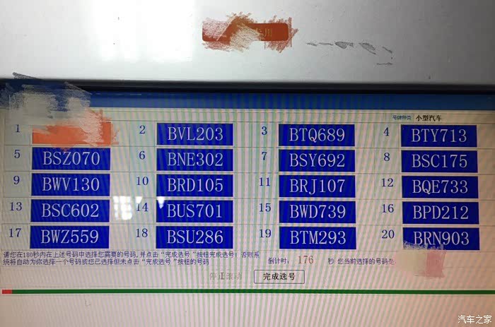 8、听到叫号后,带上你们拆下来的沪C号牌,到窗口把所有证件、单子、照片都给警察妹妹,记得仍旧留好一联叫号单。办好后她会给你一张选号单及其他原件。找到选号机器,将选号单上的条型码对准扫描口,选号,20选1。
