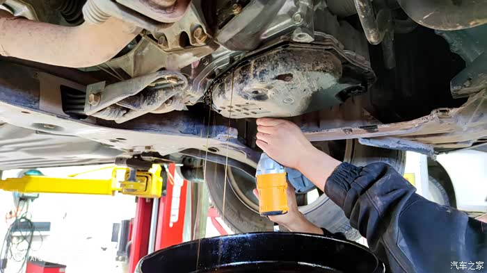更换中的新旧油,有些变速箱油是红色的,爱信的就是红色,我不敢用。