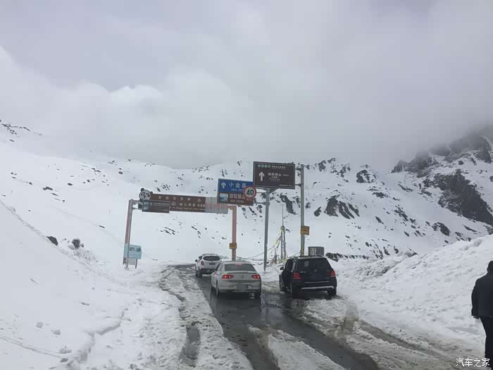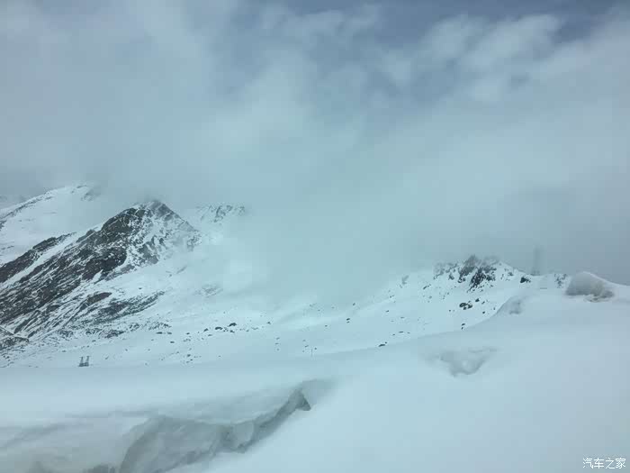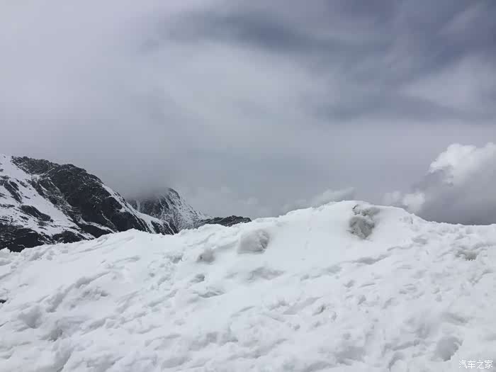 垭口上厚厚的积雪,是不是前两天山顶一直在下雪呢。