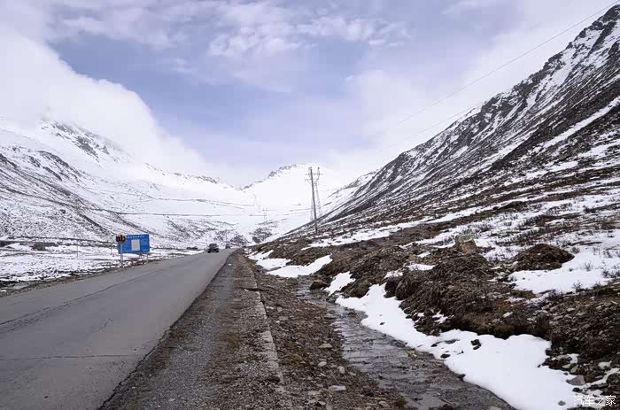 随着海拔的升高,道路两边都是厚厚的大雪。