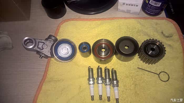 重点来了:我把旧部件捎回家,一是喜欢这种金属的东西,二是看看那些部件损耗比较大!从左到右依次损耗较大,后面的两个蓝色的几乎更新的没有区别。那个有齿的是最容易出现问题,这个结论我在网络上也是看到过,至于那个最大的蓝色的有的说突出那个小轴部分有渗油,那是危言耸听,如果让我再一次选择蓝色的这两个我也许不换的!补充一下,皮带的情况,新旧对比是新的更柔韧一些,旧皮带更硬一点,不知道是老化还是因为供应商变化的原因,(以前车友换的是绿色的字体,现在是白色字体的)若不是想去新疆,估计再跑2年,没有任何风险,