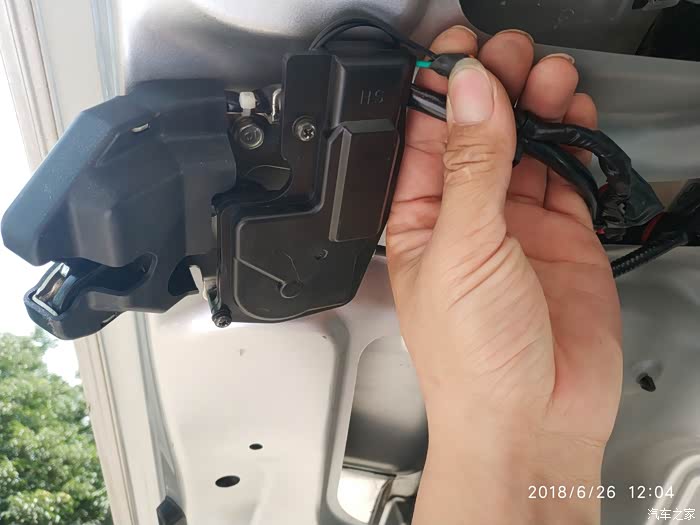 注意这点:买过来六代雅阁总成锁把锁和马达分开,移植到原车锁来替换原车手拉开关,六代雅阁锁后面的拉杆跟八代思域不一样,用不了的,所以要用回原车锁头,黑色綫搭铁就好了