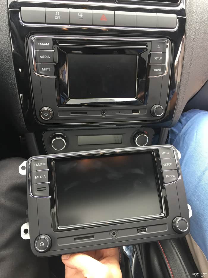 原车的CD机头已拆下,先换了MIB5寸CD,后来觉得屏幕太小,又换了个MIB6寸无CD的机头