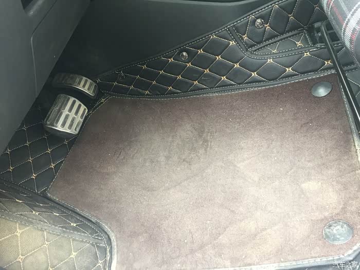金属踏板+全包围复合皮革脚垫,方便拆洗,完美贴合。(最近下雨天比较脏