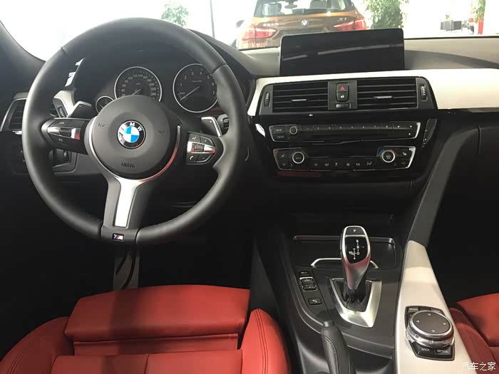 宝马丁字裤方向盘,粗细适中手感超好;大鸡腿、大旋钮、大屏;白外红内,闷骚最爱