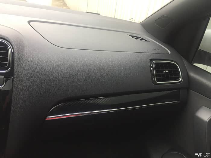 副驾驶手套箱上贴了个碳纤维装饰条,显得不那么单调