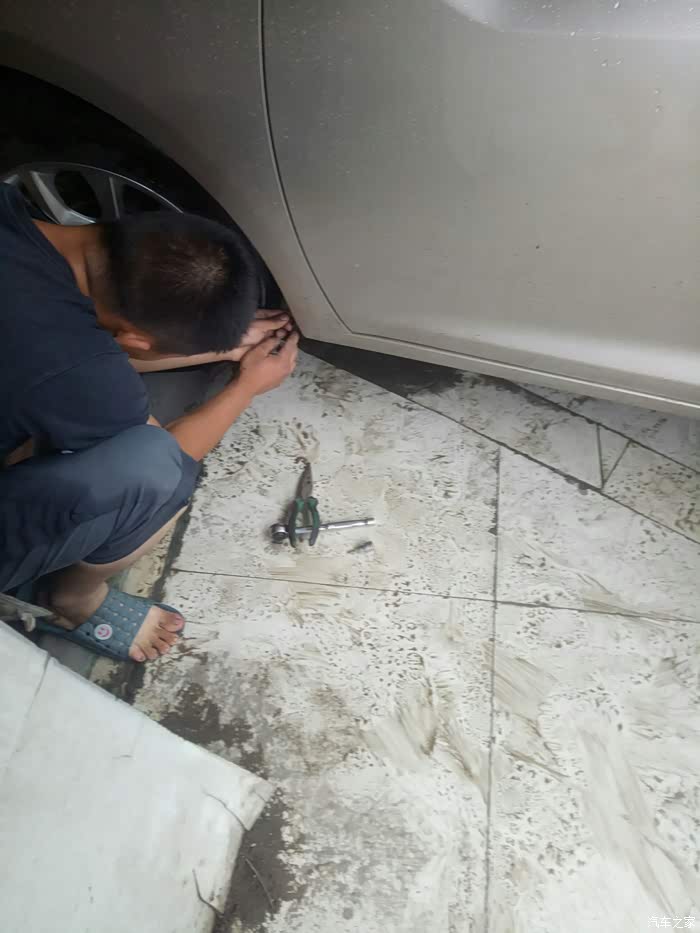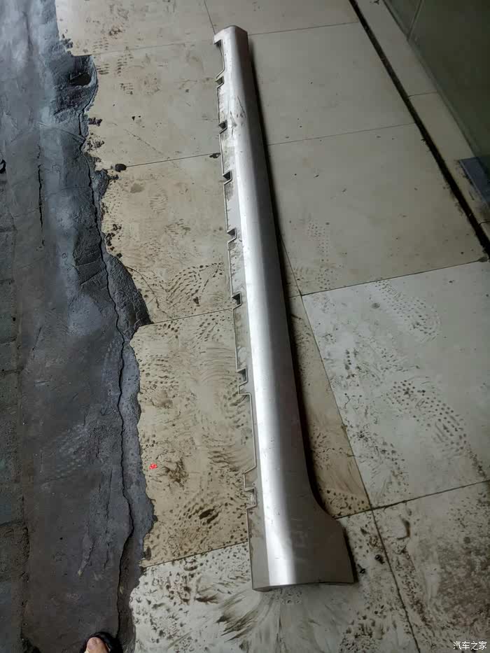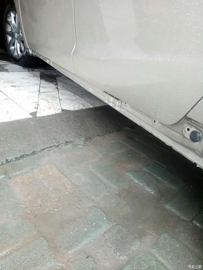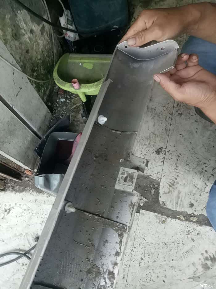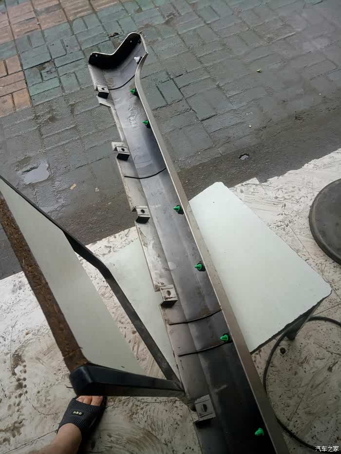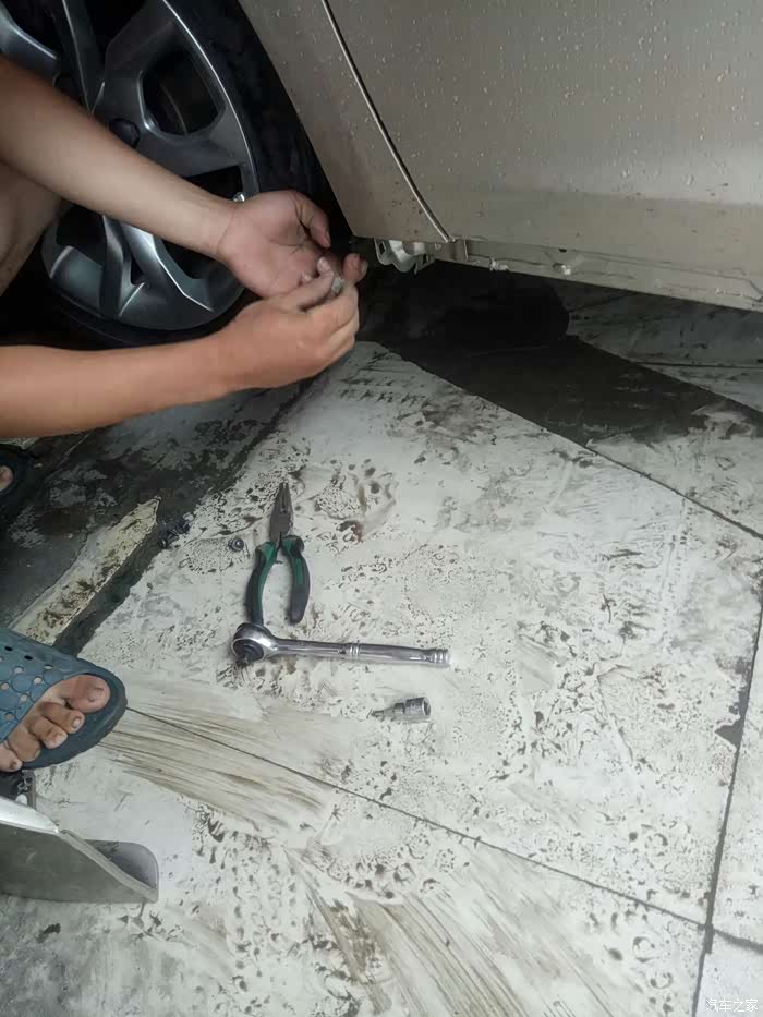 高高兴兴的启动车子,去前往学校的路上时,由于公路正在施工,大小坑都有加上路面积水,看不清实地。结果一边的轮子就走空了,导致左边下边梁饰板脱离另一头长根部断开。冒着大雨把另一头没有断掉的地方,用螺丝刀和老虎钳,卸了半个多小时才卸掉
