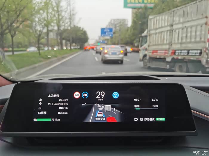 我这次开了287KM 各种路况都有,温度经历了8℃到30℃(春夏秋冬都有了)平均电耗18-20(为了测试车车的各种功能,外放电座椅组合装载能力测试用电保持等等浪费了很多不必要的电),算下来大概是14.4/18=0.8,14.4/20=0.72 即7-8折,对于这么一个大车来说,我非常满意,达到了平均水平,另外有个我没想到的是它的节能模式中保留了“单踏板”模式,单踏板模式是电车的灵魂,现在好多电车都取消单踏板了,能量回收简直达不到拖拽车辆制动的功能,单踏板的好处我只能说是谁用谁知道,呵呵
