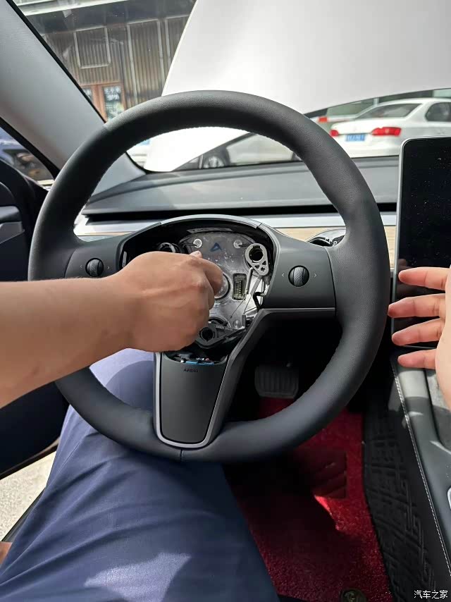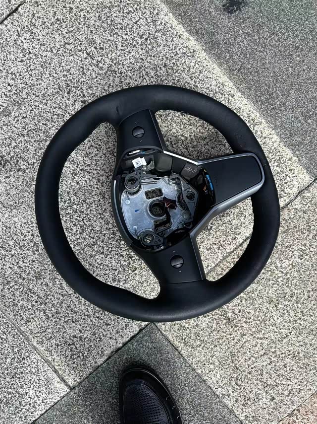 我的modely,已经行驶了两年、近三万公里,方向盘出现了鼓包,一侧有明显的瑕疵,手感也变得很差。