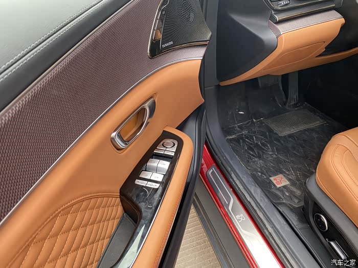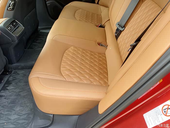前后座椅间距宽,坐在后排伸展起来轻松,座椅橙色设计,看着温馨也很上档次。