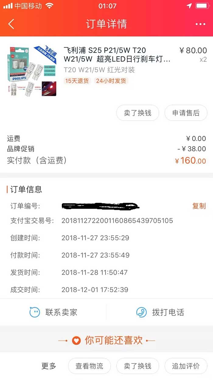 1,再网上购买飞利浦LED刹车灯4个,LED倒车灯等2个,(刚开始买的LED等太长了,根本装不下,示宽灯的空间很小的,所以要买短的灯),T20双丝刹车灯灯座2个(一定要双丝的),T20倒车灯灯座1个(单丝)