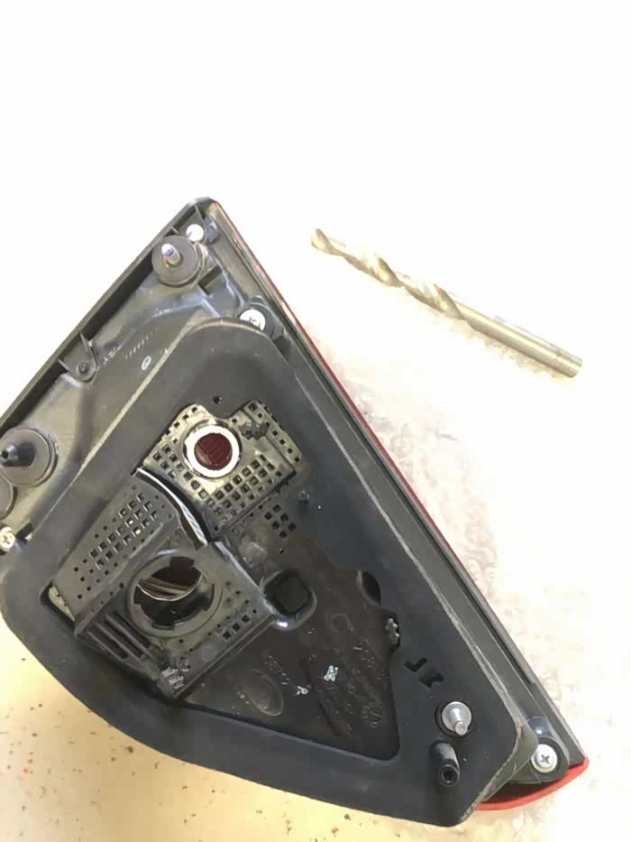 左尾灯,已经开好倒车灯孔了,左边孔是原雾灯孔,,上边是原示廓灯孔(很小的,加工了下)