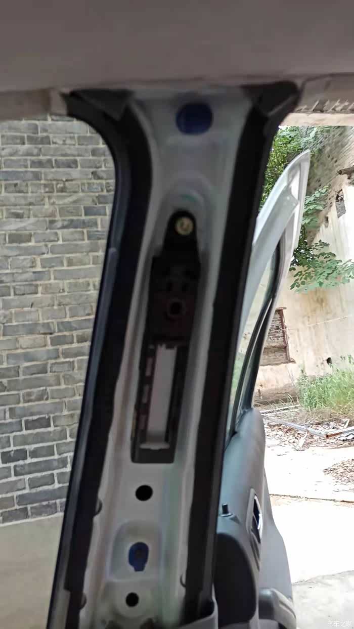 B柱拆开的样子,比较紧,不好拆,拍虚了。