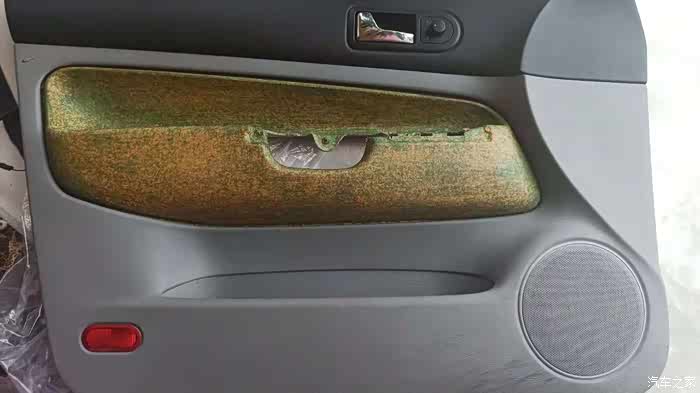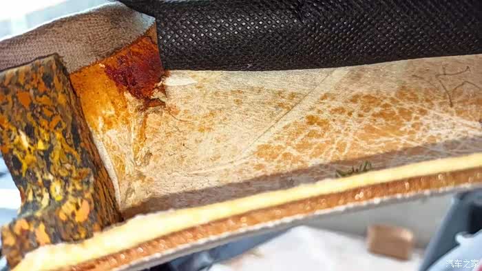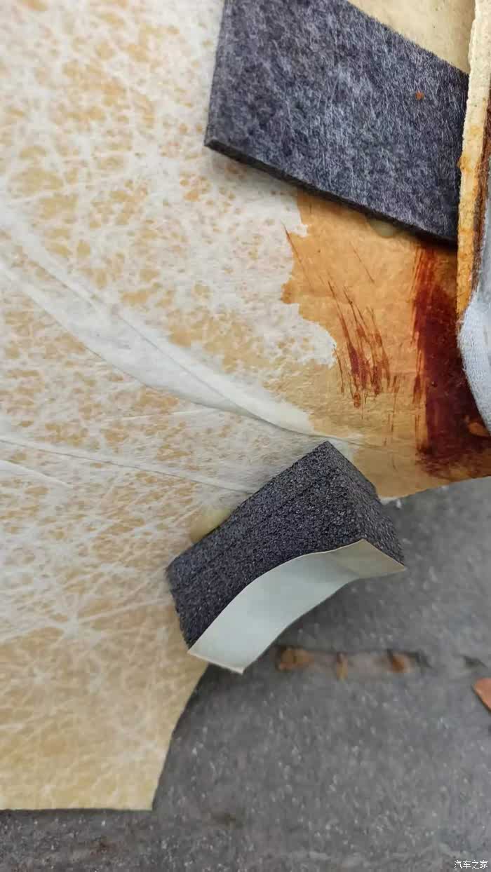 扯掉内饰布的样子,海绵和胶老化了,特别难清理,掉在哪,就像胶粘在哪了。