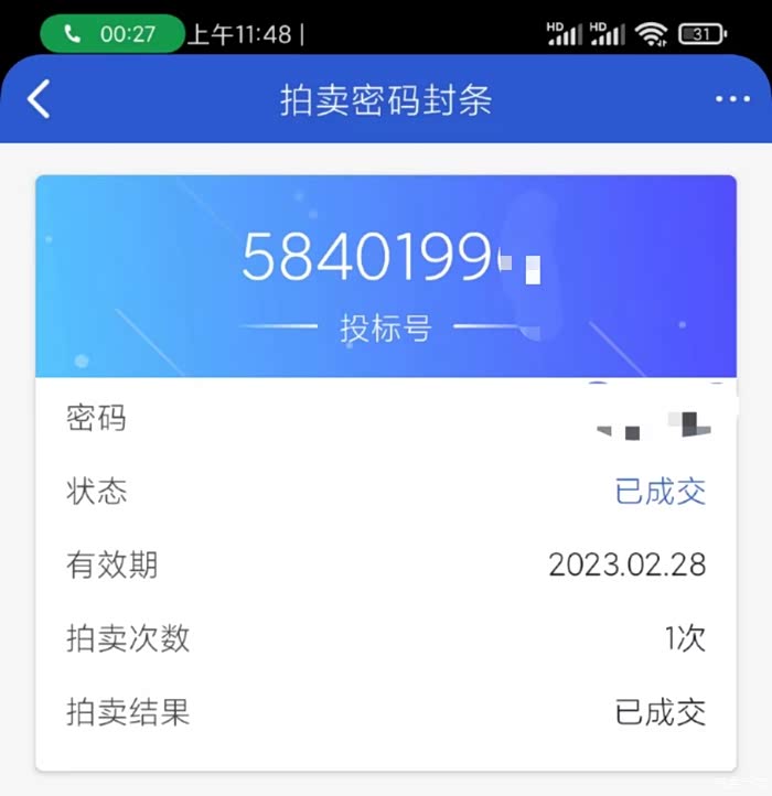 或许是上天眷顾吧,催着我买车来着,8月初申请的标书,第一次拍牌就中了。
