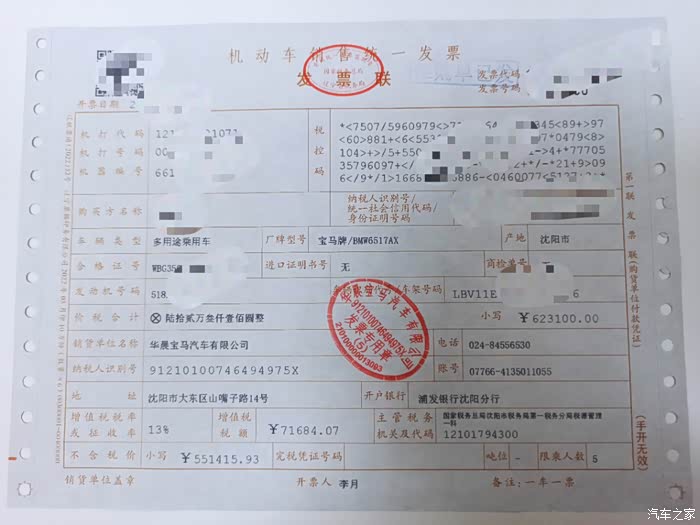 主要是中间工作派遣去了趟北京,然后过年才回的上海,导致提车完了点,不过还好,赶上了降价,原本X5 xDrive 30Li 尊享原价639000元的车价,后来提车才623100元,免了店里13888元的装潢费,没了购置税,这两块就便宜了7万多,用女友的话说“有此等便宜不占是对不起自己的劳动力啊”