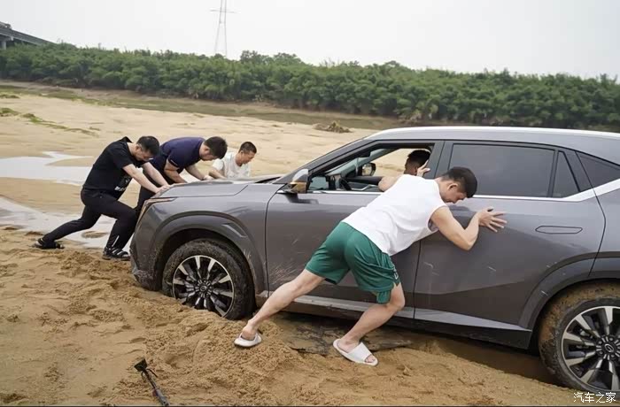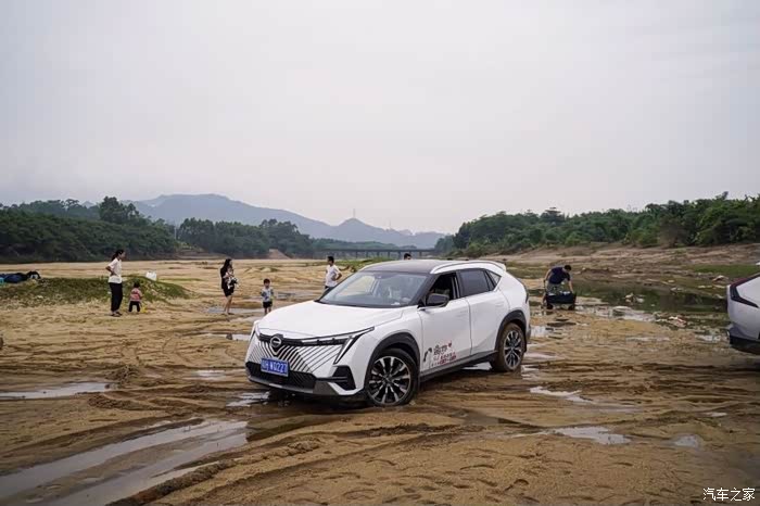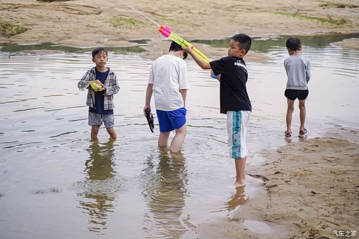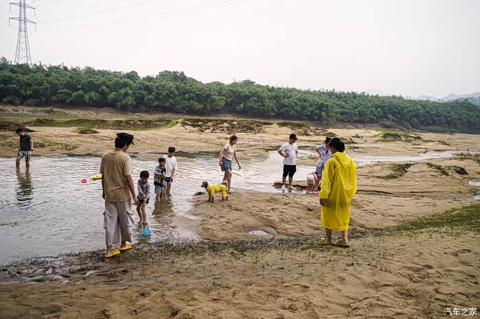 青岐涌经过上游泄洪的冲刷,原有的草地大部分已消失,换来的是一片大沙滩,沙子细且软,踩上去甚是舒服。因为下雨的缘故,去沙滩路上泥泞不堪,先行的2辆车均陷入沙内,其中1辆无法自拔,后续所有车便没再开下去,是个遗憾。不过,陷车的刺激、推车的欢乐不是经常甚至一辈子都不一定能遇到的,小伙伴们过了把瘾。