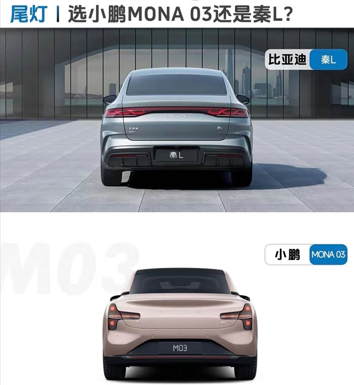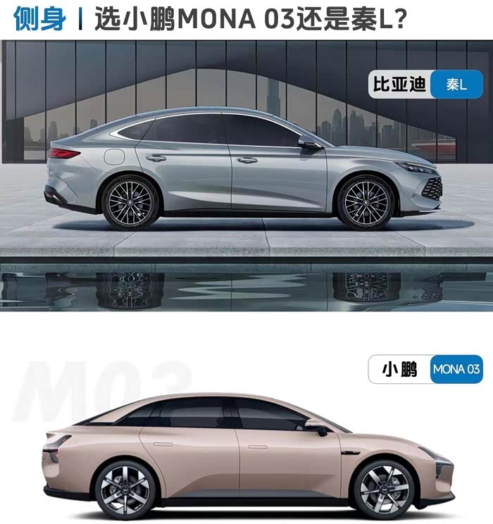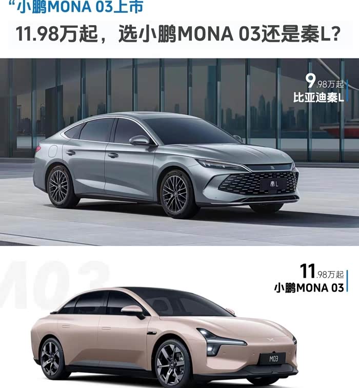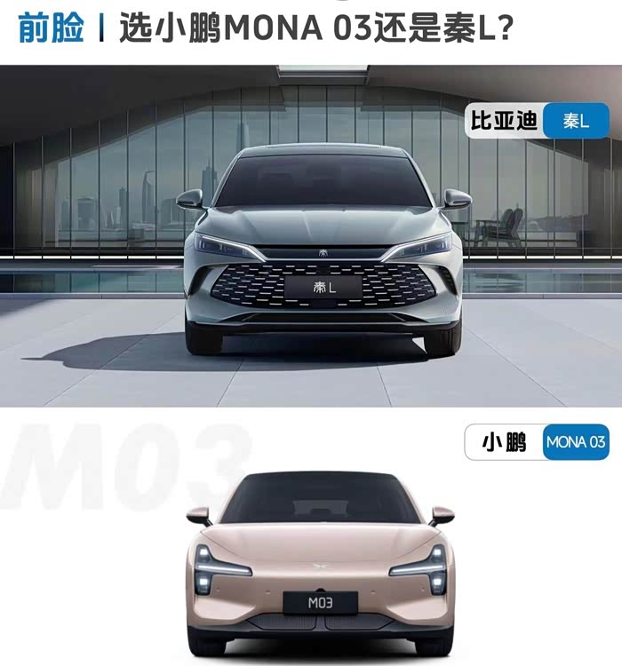 近期,小鹏汽车MONA M03正式发布,这是一款纯电动轿车,从定位上看,这款车与比亚迪秦L是直接的竞争关系,那么两款车该怎么选呢?颜值谁赢了?