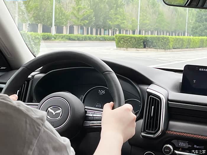 试驾车是2.5自吸顶配,在自吸中2.5算是大排量了。整车开起来最大的感受就是好开。不管转向还是底盘,都没有因为车变大而不好开。相反我觉得比之前的CX-5更灵活好开(没有对比我可不敢乱说,好哥们儿开的就是CX-5)。另外,刹车时不会出现点头,整体悬挂调校偏硬,这样能更直接感受到路面的状况,驾驶感更好。