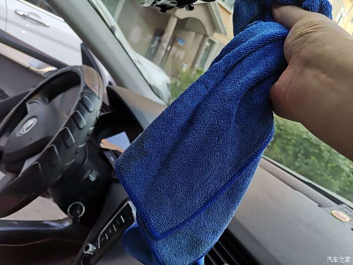 用汽车之家专用擦车巾清理安装区域。