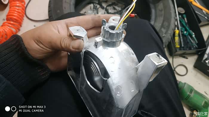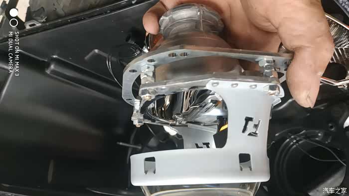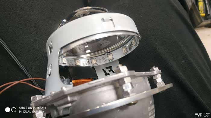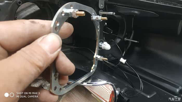 把透镜转接支架用M4螺丝固定,装3颗丝就可以,要垫至少三个螺帽垫高,因为海拉5透镜的高度不够,不垫高的话装好透镜太靠内,影响近光照射范围和美观度