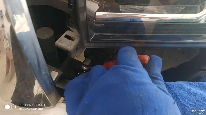 这地方也有一颗大灯固定螺丝。4颗螺丝都拆掉,大灯就可以取下了
