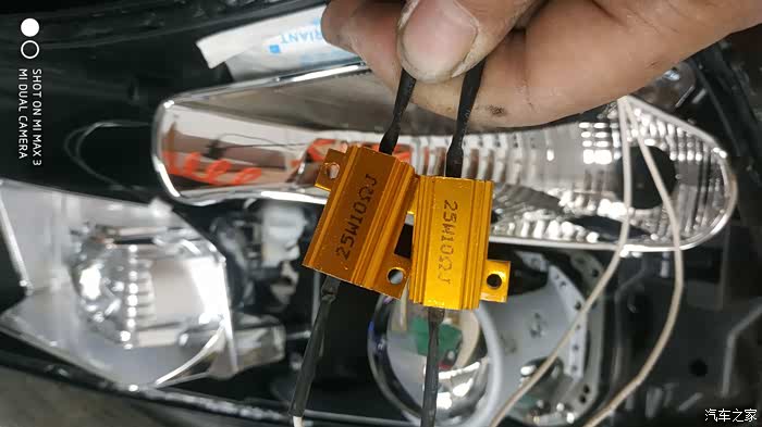 原车转向灯泡已拆下,做两个电阻跨接到转向灯线路上