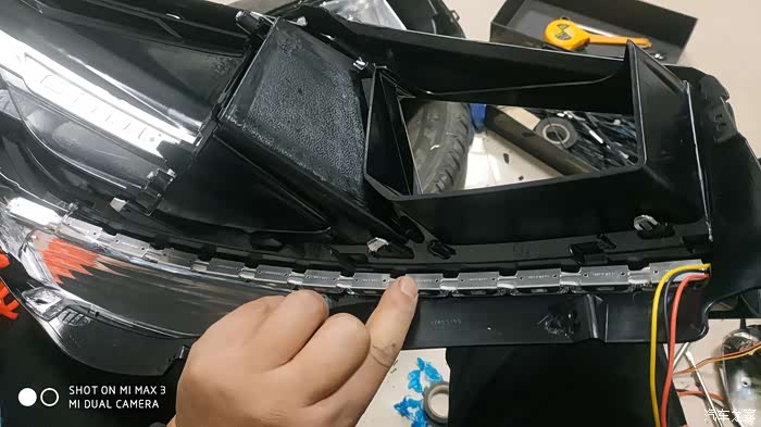 流水转向灯条卡在原小灯导光条位置上,背后用天使眼胶滴几滴加固就好