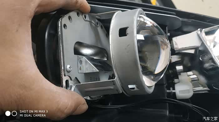 这个就是原车透镜,从侧面可以看出透镜镀层比较粗糙,光反射不出来