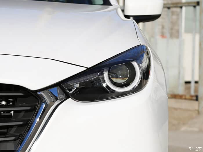 马自达现在家族外观是魂动设计,其实主要体现在红色车身,红色确实好看些,眼睛细细的,得看角度,像这个角度就有些猥琐了,车身设计很流线,挺低的,按理说是好事,我是不喜欢太低。