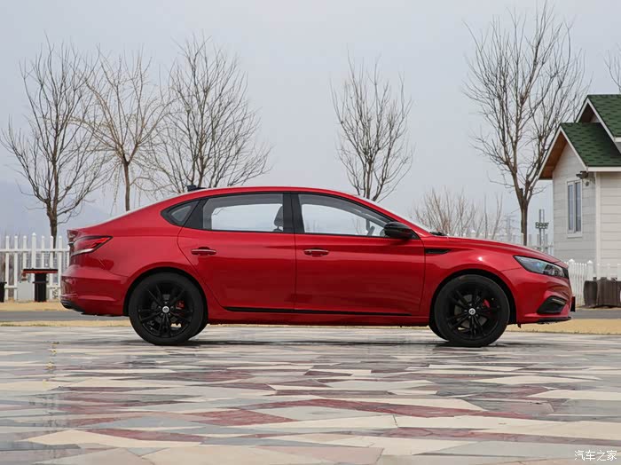 名爵6就是轿跑外观了,短款的溜背造型,尾部很饱满,加个无框车门就更帅气了,黑化的轮毂,红色的卡钳,运动元素很多。而且名爵6同个级别但是尺寸各方面都比昂克赛拉要大些。
